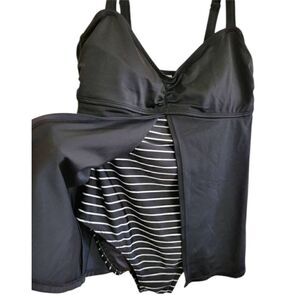 Tropical Escape Sz 16 One Piece Swimsuit Black Striped