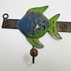 Tropical Fish Metal Wall 3 Hook Blue Green Cabin Cottage Lodge