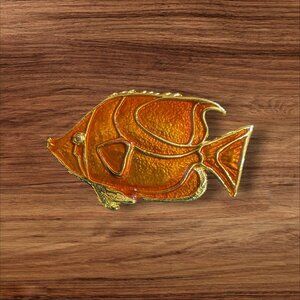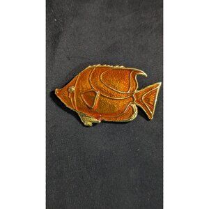 Tropical Fish Pin Brooch Gold Tone Orange Enamel Elegant Vintage Jewelry 2"