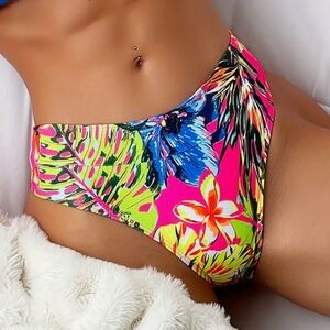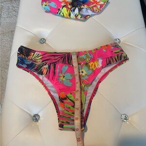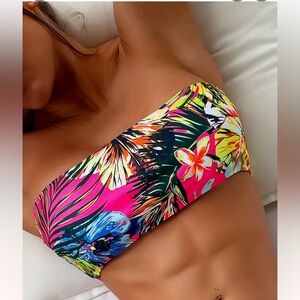 Tropical Floral Bandeau Tube Top High Waisted Bikini Size Small NWT New