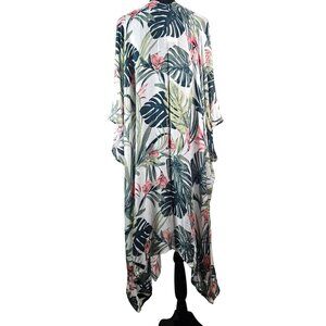 Tropical Floral Kimono Cardigan Womens O/S Lightweight Cover-Up