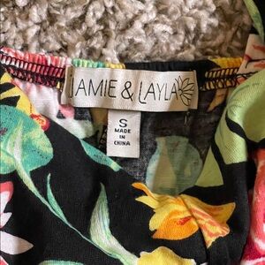 Step into style with this tropical floral midi dress. The vibrant multicolor design on a classic black base makes it a standout choice for any occasion.