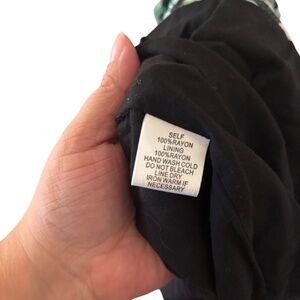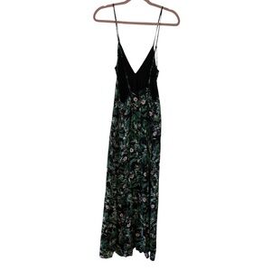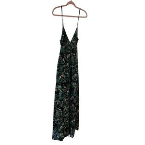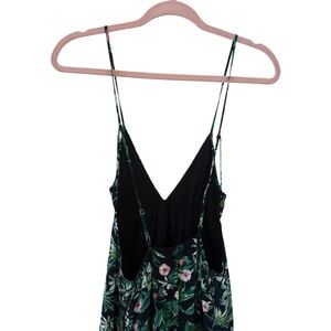 Tropical Floral Midi Maxi Dress Black Green Spaghetti Strap Lined Rayon Medium