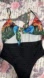 Vibrant tropical floral one-piece swimsuit with a tie-front design. Features bold colors and a flattering fit.