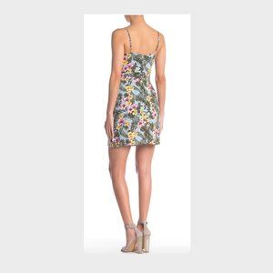 A tropical Hawaiian print adorns this vacay-ready faux wrap dress for flirty, feminine style.