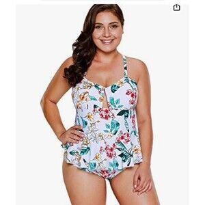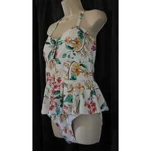 Tropical Floral Print Peplum Multiway One-Piece Swimwear XL Unbranded