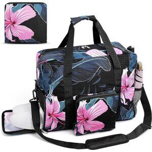 Tropical Floral Print Sports Travel Tote Bag Weekender Duffle Gym Crossbody Bag