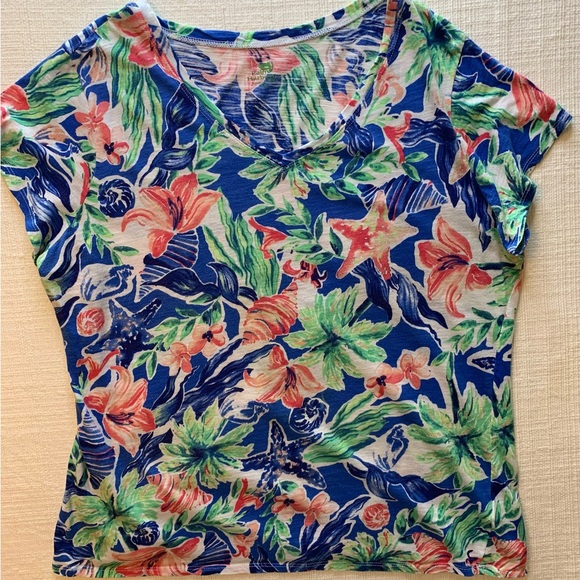 Add a touch of paradise to your wardrobe with this tropical floral V-neck top. Perfect for casual outings, it features a vibrant mix of colors that bring a fresh, lively look. Great condition.