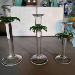 Still new in the box, solid glass candle holders from Youngs. Made in 2006, these are 10", 9", and 8" tall without candles and are in perfect condition.