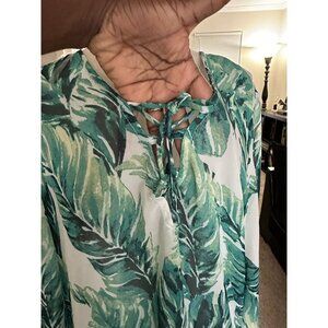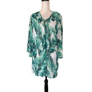 Tropical Green Leaf Print Swim Coverup