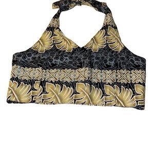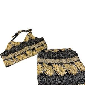 Tropical Halter Crop Top & Wrap Mini Skirt 2Pc Set Ladies S blue yellow rayon