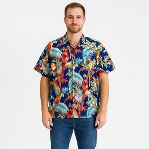 Tropical Hawaiian Vacation Resort-Wear Button Down Shirt Size Medium.