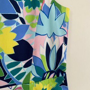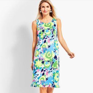 Tropical Kelly Green Sateen Sleeveless Sheath Dress w/ Ruffle Hem Talbots 6 P