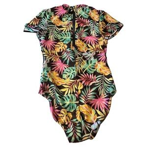 Bright and fun tropical kids swim suit perfect for beach days. Features a vibrant mix of colors for a playful look. Back zipper closure. Size 10/12 (large) girls. NWT