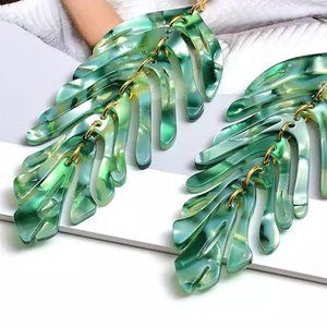 New with tags Tropical Leaf Green Tortoise Shell Dangle Earrings