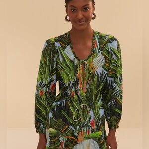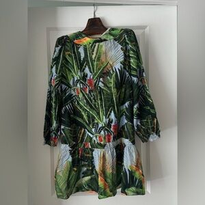 Vibrant green dress with a tropical leaf pattern. Perfect for a casual outing. Farm Rio