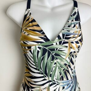 This stylish kids one piece swimsuit features a vibrant tropical leaf print. Perfect for fun days at the beach or pool.