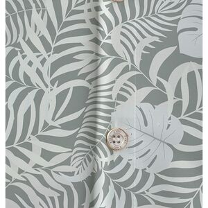 Elevate your style with this tropical leaf print shirt. Perfect for casual outings, this shirt offers comfort and a trendy look. Color is Gray. Never worn. .