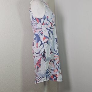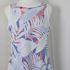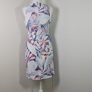 Stay cool and stylish in this Tommy Bahama IslandZone sleeveless dress, perfect for tropical getaways, summer brunches, or casual coastal days. This body-skimming shift dress features a vibrant allover tropical palm leaf print in shades of coral, navy, and white. Made with lightweight, stretchy performance fabric for breathable comfort and ease of movement.