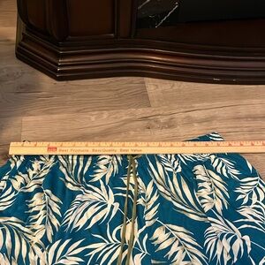 Embrace a tropical vibe with these stylish women's shorts featuring a vibrant leaf print. Perfect for casual outings or beach days Elastic waistband with pull string tie and side pockets. 17 1/2” Flat across Waist, 15” Waist to Hem, Inseam 2 1/2” 95% Viscouse, 5% Spandex