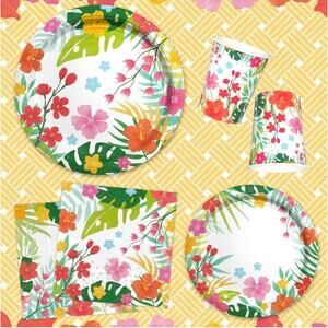 Tropical Luau Party Kit Paper Plates, Napkins, Cups, Tablecloth, and Banner s25