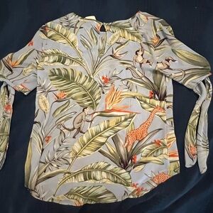 Tropical Monkey and Giraffe Print Ann Taylor Short Sleeve Shirt