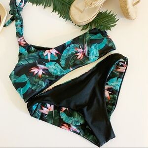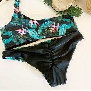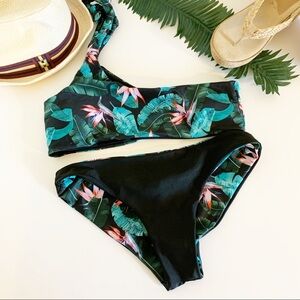 NWOT Tropical One Shoulder bikini! Size Lg Rouched bottom reversible!
