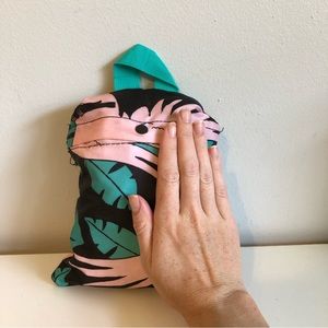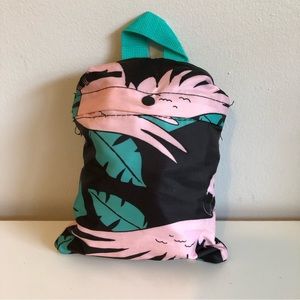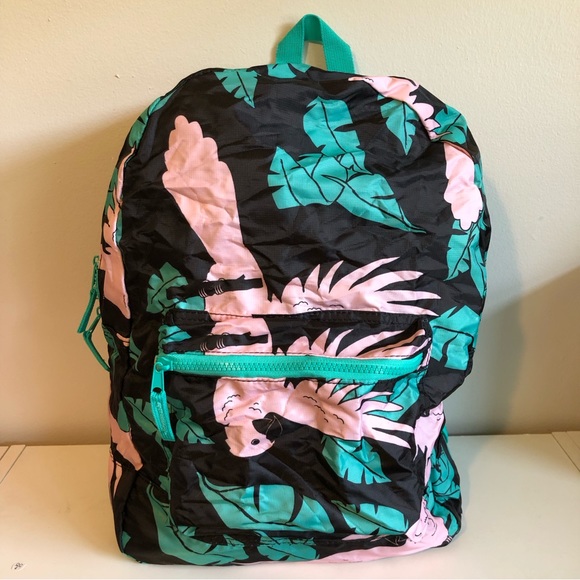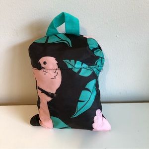 Super lightweight nylon backpack that can be folded into its own storage pocket for packing. Great for travel, camping or a beach day! Cute parrot and tropical leaf pattern. Excellent like-new condition.