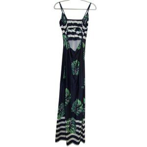 Tropical Palm Leaf Print Maxi Dress Navy White Striped Sexy Bodycon Cute XL