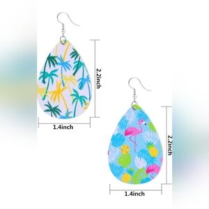Tropical Palm Leaf Teardrop Earrings Faux Leather Double Sided!