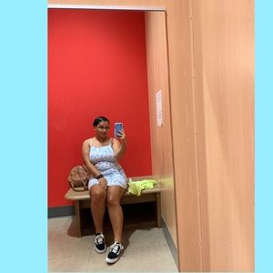 Tropical patterned mini dress. Very stylish and cute. Only worn two times both in very warm settings. (Target dress)
