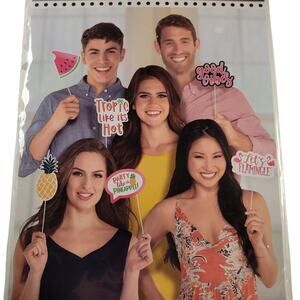New 13-piece tropical-themed photo prop set, ideal for summer parties, luaus, birthdays, or beach-themed events. Includes flamingos, fruit designs, and fun text cutouts on sticks. Each piece is pre-attached and ready to use for fun and festive photo ops. Packaged and shipped carefully from a smoke-free environment. Check my Feedback and other listings.