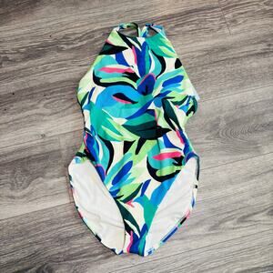 Tropical Pique High Neck Full Coverage One Piece Swimsuit - Shade & Shore 0314