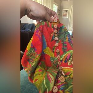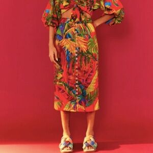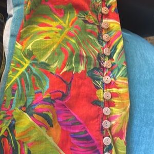 Brighten your wardrobe with this vibrant tropical print skirt. Featuring a button-down front, it's perfect for adding a splash of color to any outfit.