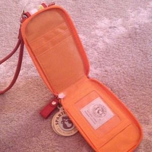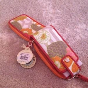 A tropical print phone carrying case and wallet with a wrist strap. This is NWT and completely unused!