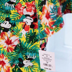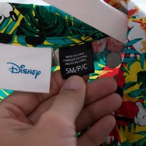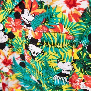 Tropical Print Disney Mickey Mouse Short Sleeve Shirt Hawaiian Floral Mens Small