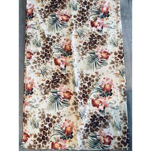 Tropical Print Fabric Tablecloth Pink Iris Green Ferns Yellow Orchids 60x118"