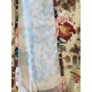 Hand Sewn Tropical Print Fabric Tablecloth with Pink Iris, Green Ferns, and Yellow Orchids. Measures approximately 60x118" Thanks for looking!