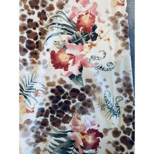 Tropical Print Fabric Tablecloth Pink Iris Green Ferns Yellow Orchids 60x82"