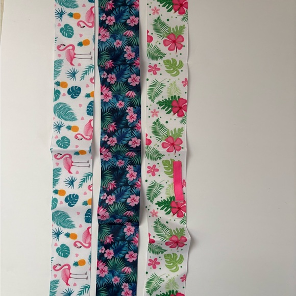 Add a splash of color to your child's look with these vibrant tropical floral and flamingo ribbons . Perfect for playful and stylish outfits.