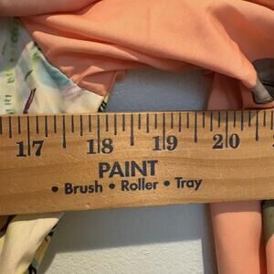 Tropical Print Maxi Dress Women Small Green Pink Long Sleeve Sash Toucan Mermaid