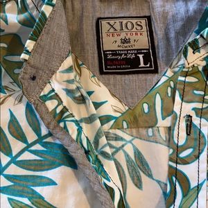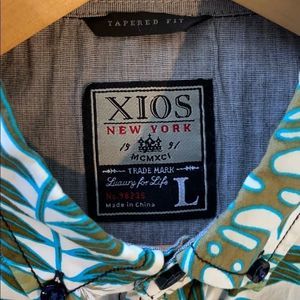 The tag size is Large but truly fits like a Medium or a very slim Large. This tee was sold to me as NWOT and is in like-new condition. Really high-quality, soft material, vibrant colors. Brand is XIOS New York.