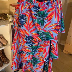 Embrace vibrant style with this tropical print midi skirt. Perfect for adding a splash of color to your wardrobe.