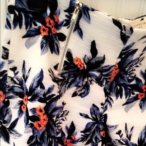 Perfect summer shorts. White with Navy, blue & orange tropical pattern + front zipper detail. Zips up back. 100% polyester & lined inside. Worn once.