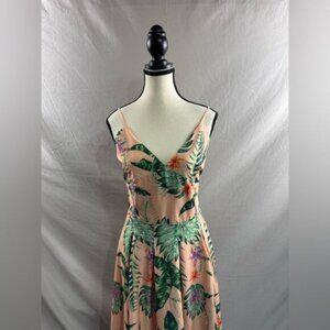 Tropical Print Striped High Slit Spaghetti Strap Maxi Dress