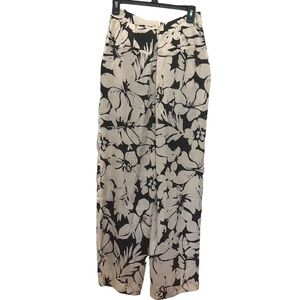 High waist pants with front pockets and back false welt pockets. Straight leg. Front zip, metal hook, and interior button closure. Feels like silk.