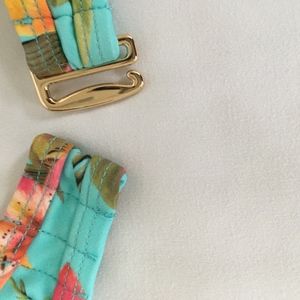 Very flattering/mid-waist/ruffles front to back/snap at the back of top/padded bra/from a non-smoking home