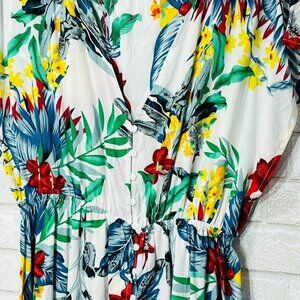 Tropical Rayon Floral Button Midi Dress Size Large Vacation Resort Boho Beachy