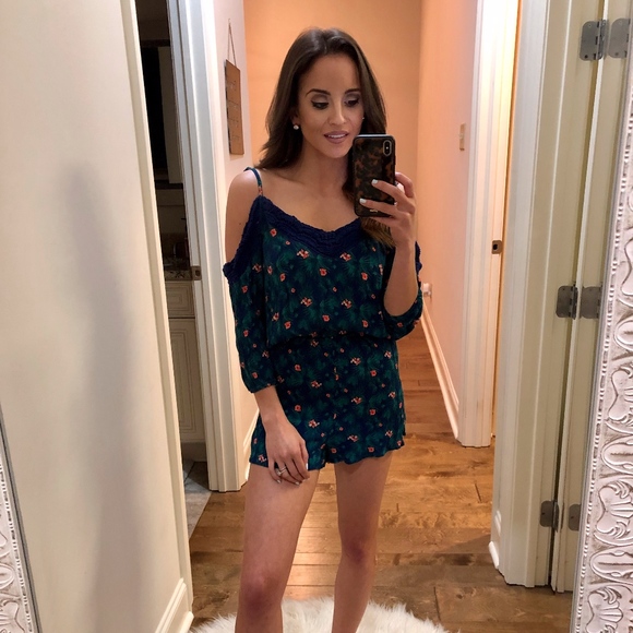 Color/Print: Navy Blue, Green, Peach Hibiscus Flowers