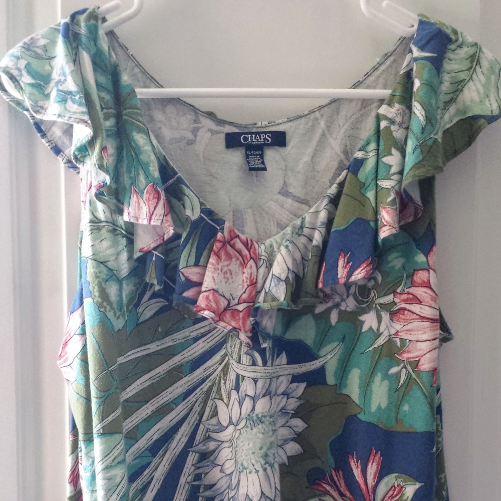 Cute, tropical, multi-color ruffle top. Great for vacay or weekend!